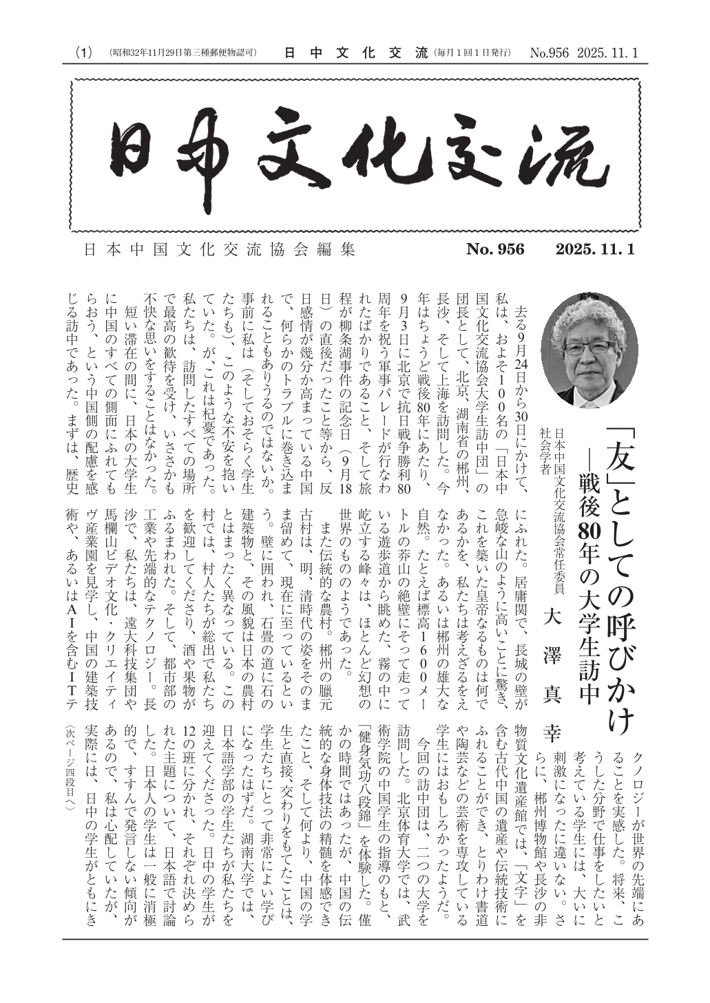日中交流の長さと厚み(No.929 2023.8.1より)