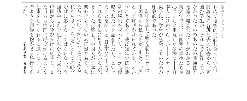 「友」としての呼びかけ ー戦後80年の大学生訪中